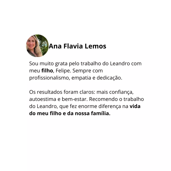 Testemunhos de sucesso: Comprovado por inúmeras histórias de pais que viram mudanças significativas em seus filhos, meu trabalho é focado em resultados concretos.